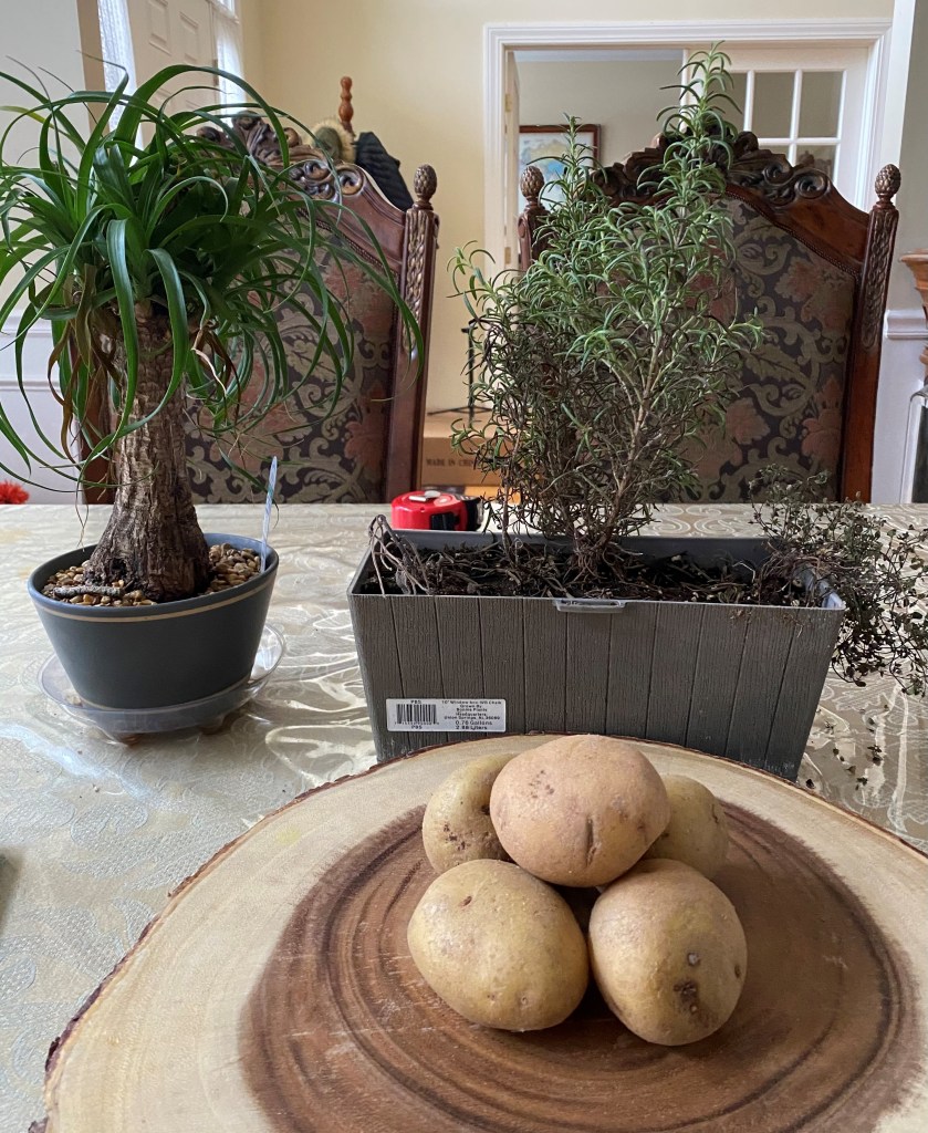 and Its very snowy and cold outside. I think I see sun rising outside and snow starts to melt, and we can see small grass patch and a mini tree and a rosemary plant with dry thyme and a vase with some dry flowers seems like autumn colors in winter months and a presenting board with nothing on it yet and a pile of bills covered with white paper and some pictures and small earphones on top of pile of papers. Small dry trees due to weather pattern changes because of arrival of winter. Some of our trees are ok and some are out of control. The area we are living have mountain like features and outside water pond with a small wooden bridge on it. Clean water is flowing under the bridge. Some river stones are very small, and some are very bad. I am having very bad experience with their dog their dog tries to molest human woman, illegal immigrant. I see one book on table. someone was reading it few days ago. I have horrible neighbor. A car just passed across the road outside. Neighborhood very quiet. Somebody throws our wreath in the snow. We see mail truck going across the street. Somebody keeps on asking about USA mailboxes. Another car just passed by. Our wooded area is full of snow. Some of our dried maple tree leaves fall on the soil. Outside we see some bird flying outside, just a small shadow of a flying.