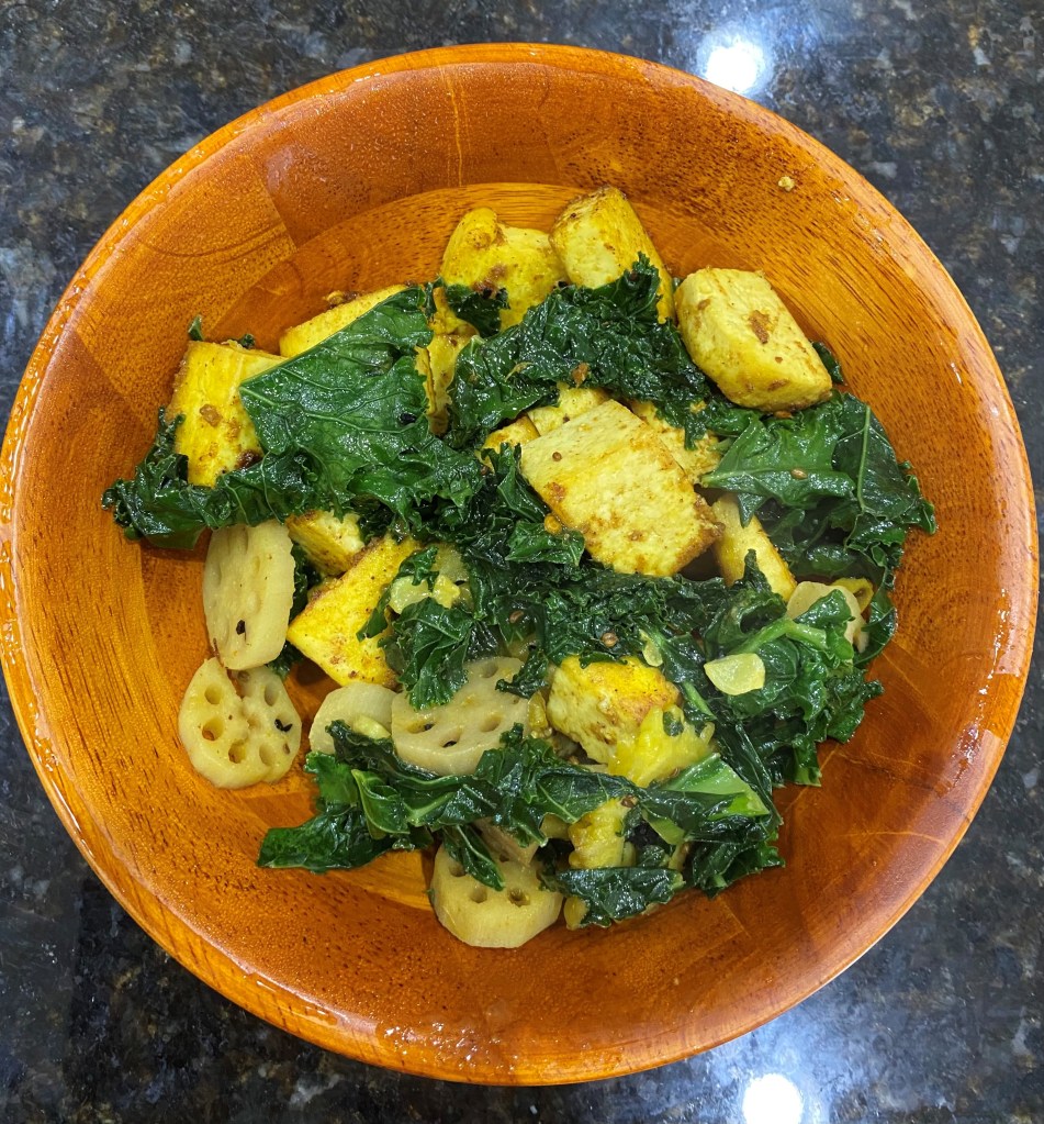 - Then mix tofu, kale and pickled bitter guard and pickled lotus root and make a beautiful bowl to eat them. It looks awesome and good and healthy to eat.