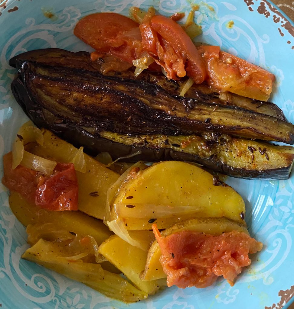 Today is Sunday and kind of lazy day but we able to go out and buy stuff for our garden and weather seems cloudy . Hopefully we are able to see showers so our plants will do better. I think Egg plant dish is great for dinner with another dish with potato wedges with white onions and Roma tomatoes.