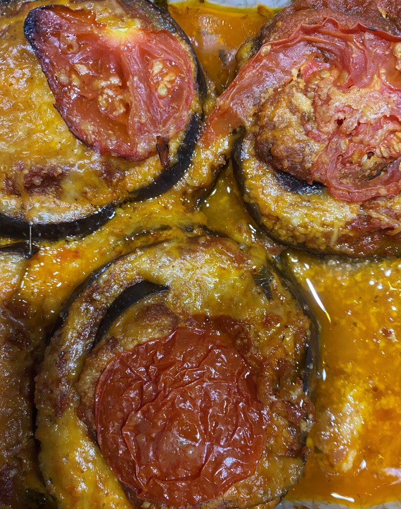 Take a deep square dish . coat it with oilve oilfrom inside so veggies wonot stick to the bottom. Then arrange the eggplant slices in row in a dish. put a spoonfull of marinara sauce on each slice then sprinkle parmasan cheese on each slice, than put a tablespoon of mixed italian cheese on each slice ,than cover each slice with another row of egg plant slices.repeat the whole process until you finsh stscking all the slices , cheese and marinara sauce. In the end cover it with tomato slices and drizzle extra virgin oil on it. put the dish in to oven for 40 minutes at 350 degree. cover it with aluminium foil so it can cook evenly . After 40 minutes take it out . its so delicious and gorgeous looking. It smells so good. serve it with nice salad on the side. Its very healthy and vegetarian. tomatoes are full of antioxidant name lycopene, vitamink,vitamin c. very healthy. Eggplant is rich in nutrients, fiber, Protein, folate and potassium and antioxidants and good for digestion. cheese is a milk product full of calcium and olive oil is heart healthy and it tastes so good . very nutritious and healthy meal. you can eat it as it is or serve it with any kind of salad. like take cut romain lettuce and cut tomatoes and slices of tomatoes in it. make a vinegret out of vinegar and extravirgin olive oil, then drizzle on the sald its healthy too. serve it with main dish we made. i hope you guys will like my recipe for today.