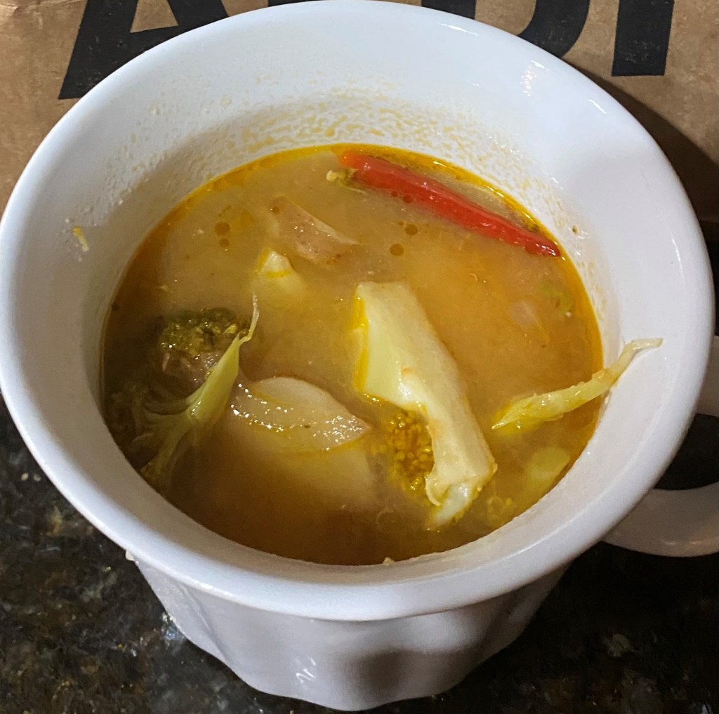 Take a pot and add a tablespoon of olive oil then add ginger and garlic and add chopped vegetables and cook it for 10 minutes until golden brown. Then add 4 cups of water and cook it for 15 minutes. in the end add salt and pepper. it’s very simple and good, the vegetable broth tastes so good. very light for digestion and good. serve it with homemade bread.