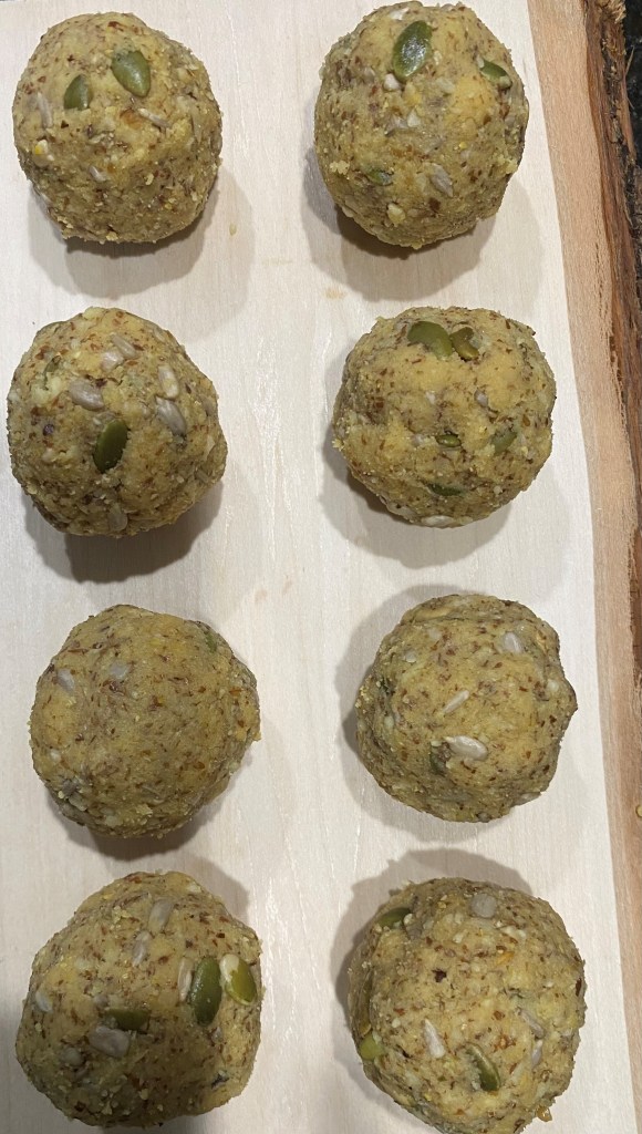 Take a deep pan and add one-fourth cup of clarified butter. then add 2 cups of chickpea flour and then added I cup of coconut oil and cook it on low to medium heat and keep on stringing it until its golden brown and then add condensed milk add all the ingredients one by one then mix them well while cooking them on low heat, we can smell it, it’s very flavorful then after 15 minutes take it off the heat, let it cool and make balls, they are delicious and are full of omega 3s.