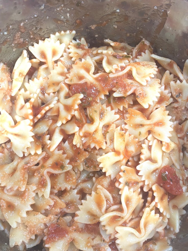 Take a deep pot, fill it up with clean water, then boil it, and put the pasta in it, and then cook it for 20 minutes until it’s soft to the touch. Then make pasta sauce. Take a pan then add crushed Tomatoes and a tablespoon of Italian spice1teaspoon of salt and pepper then cover the pan and cook it on low heat for 10 minutes. off the heat. it’s ready to serve on pasta.